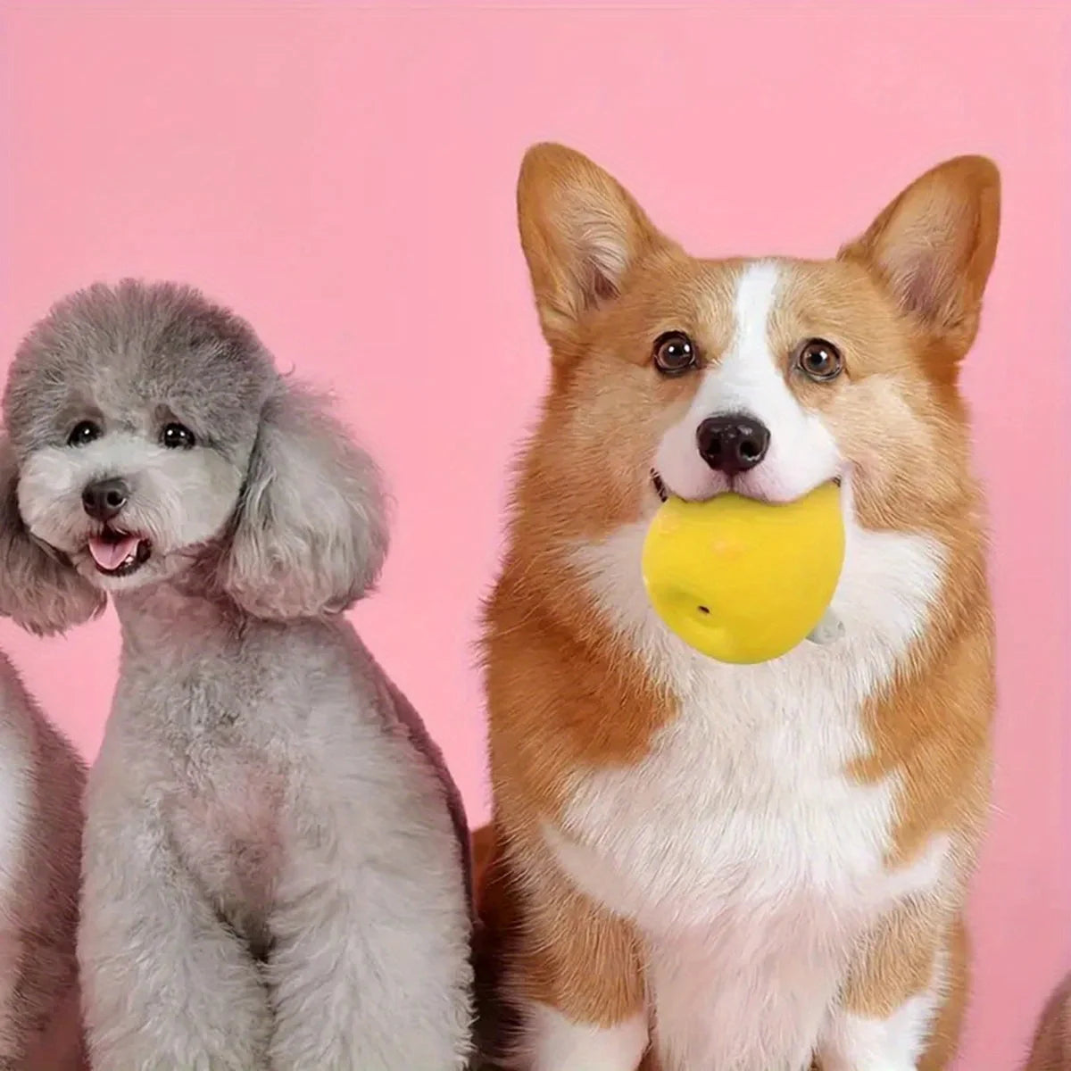 1pc Dog Sounding Toy with Cartoon Little Yellow Chicken Design, Pet Durable Latex Chew Teeth Grinding with Squeaky Dog Toy Ball