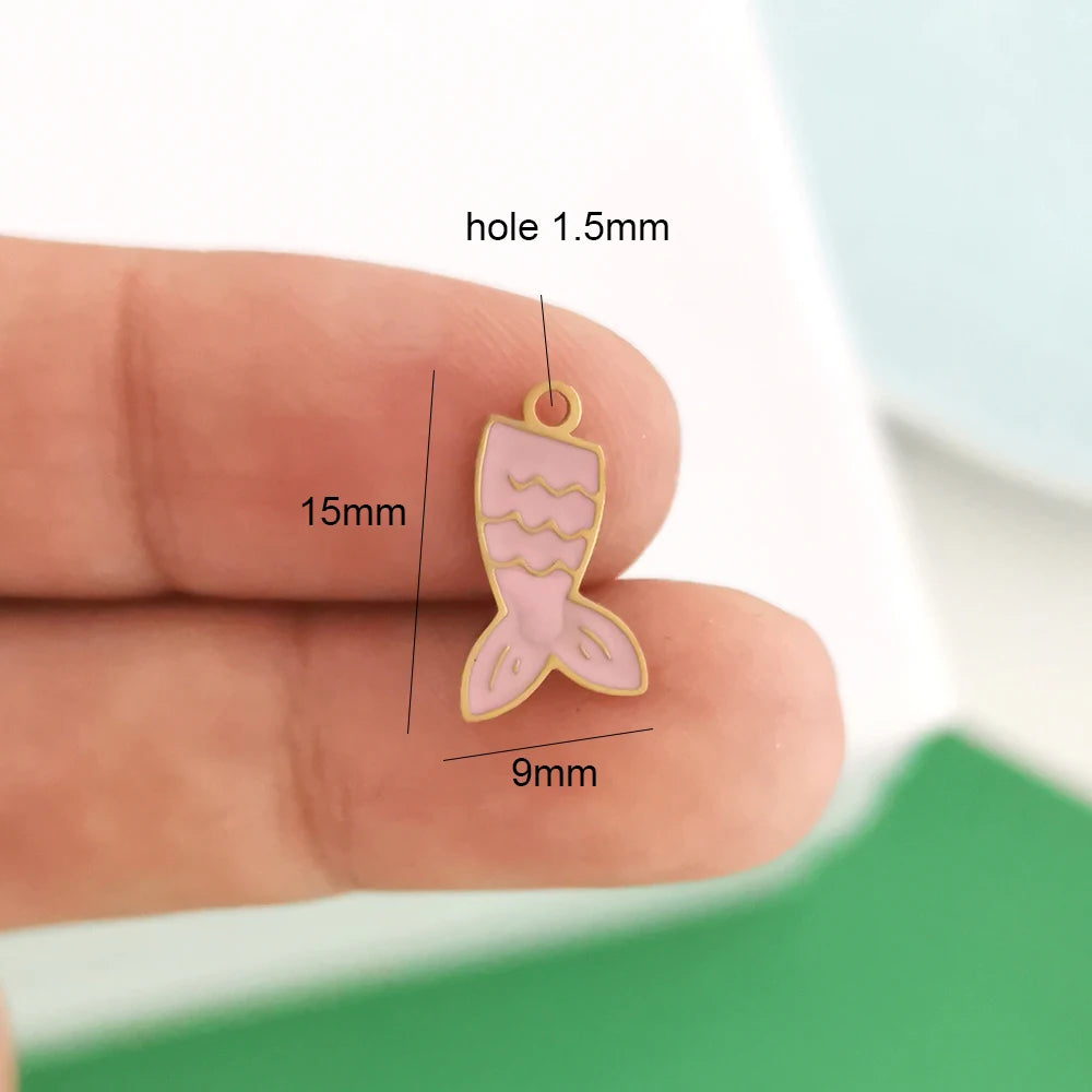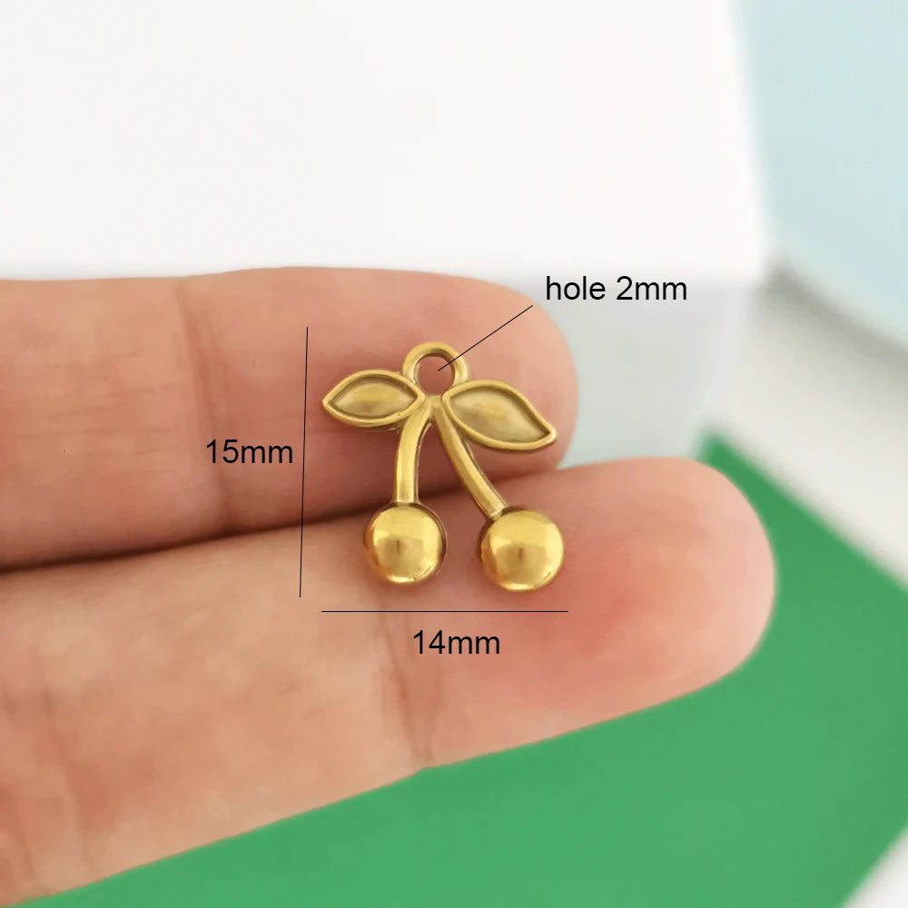 1pc Stainless Steel Big Pendant Small Charm Cherry Angel Boot Heart Tail Flower Star Cross Key Moon Pearl Bow PVD Gold Color