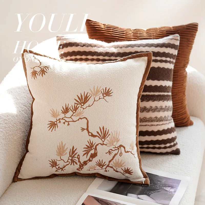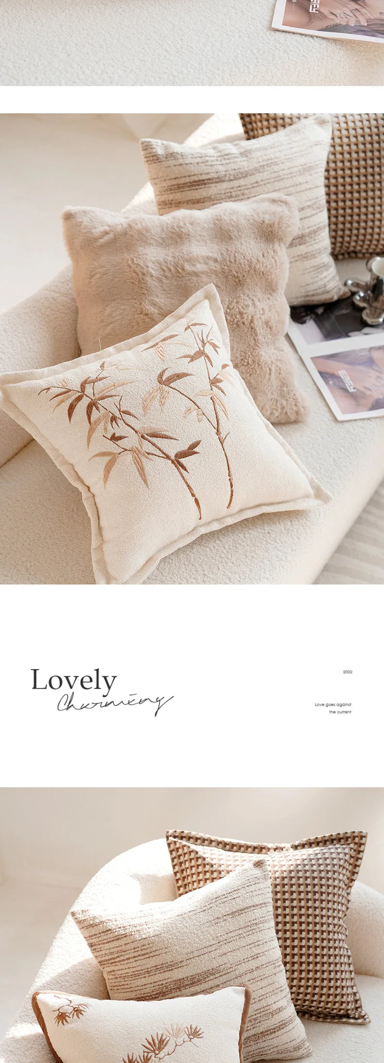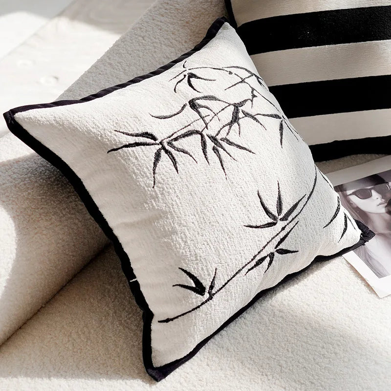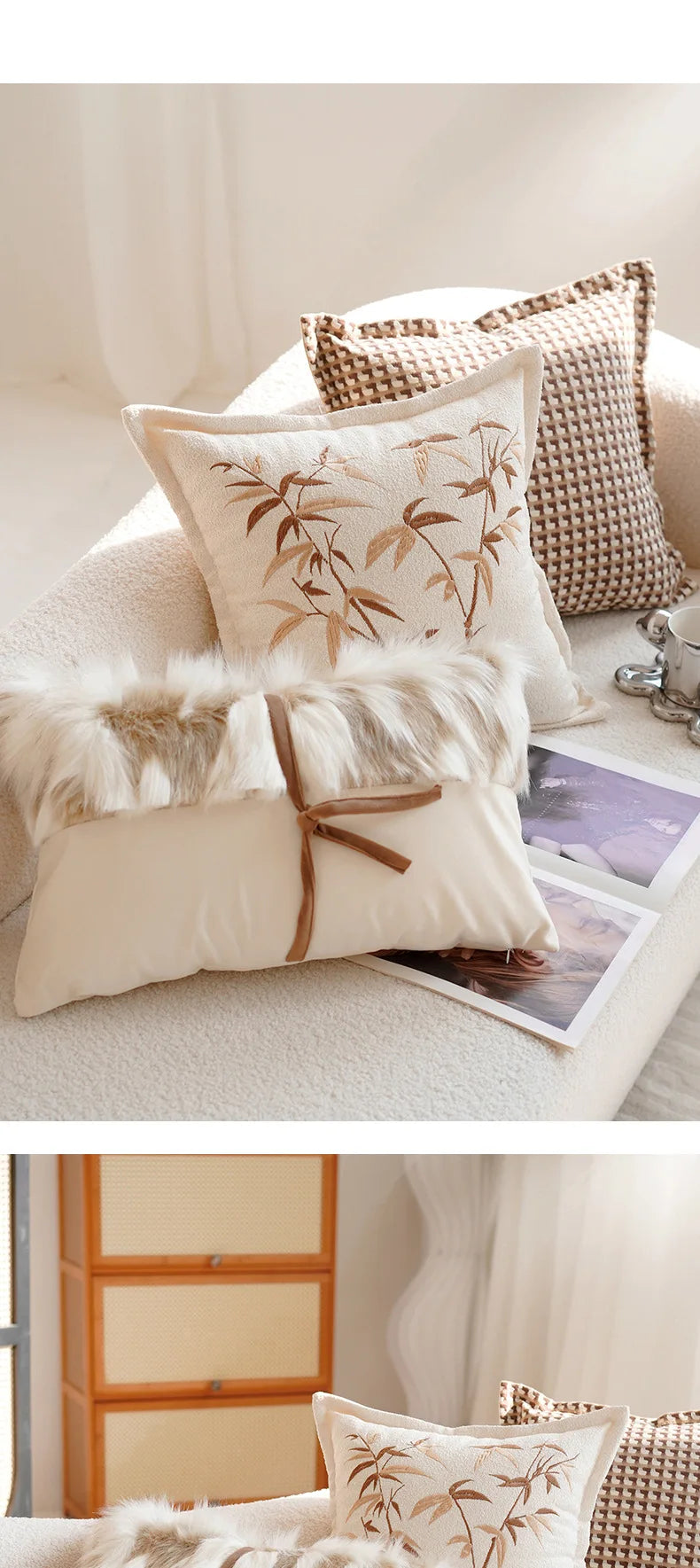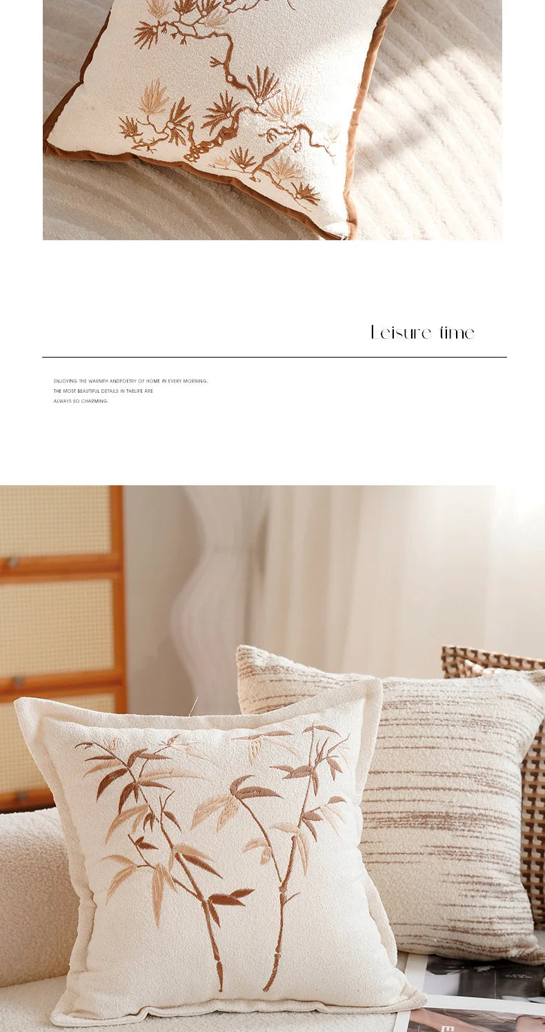30X50/45x45CM Embroidered Bamboo Leaf Throw Pillow Cover Stamping Waist Cushion Cover Decor Home Decorative Pillowcase