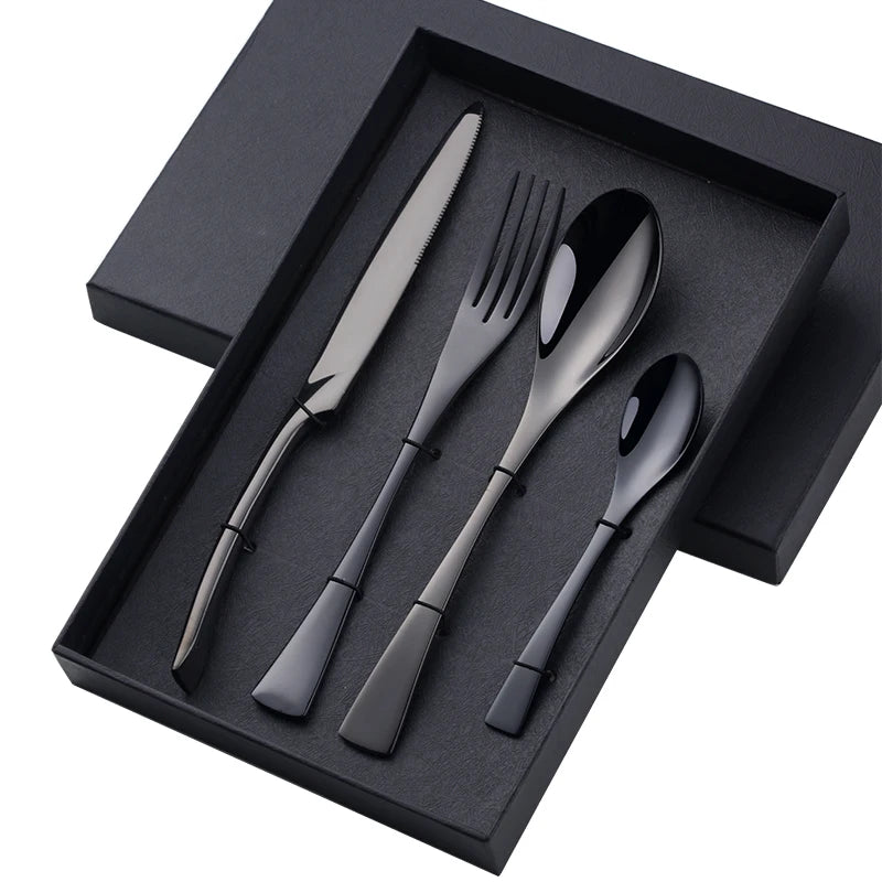 4 PCS Flatware Box Cutlery Stainless Steel Dinnerware Set Rainbow Colorful Silverware Tableware Hotel Party Kitchen Gift Talher