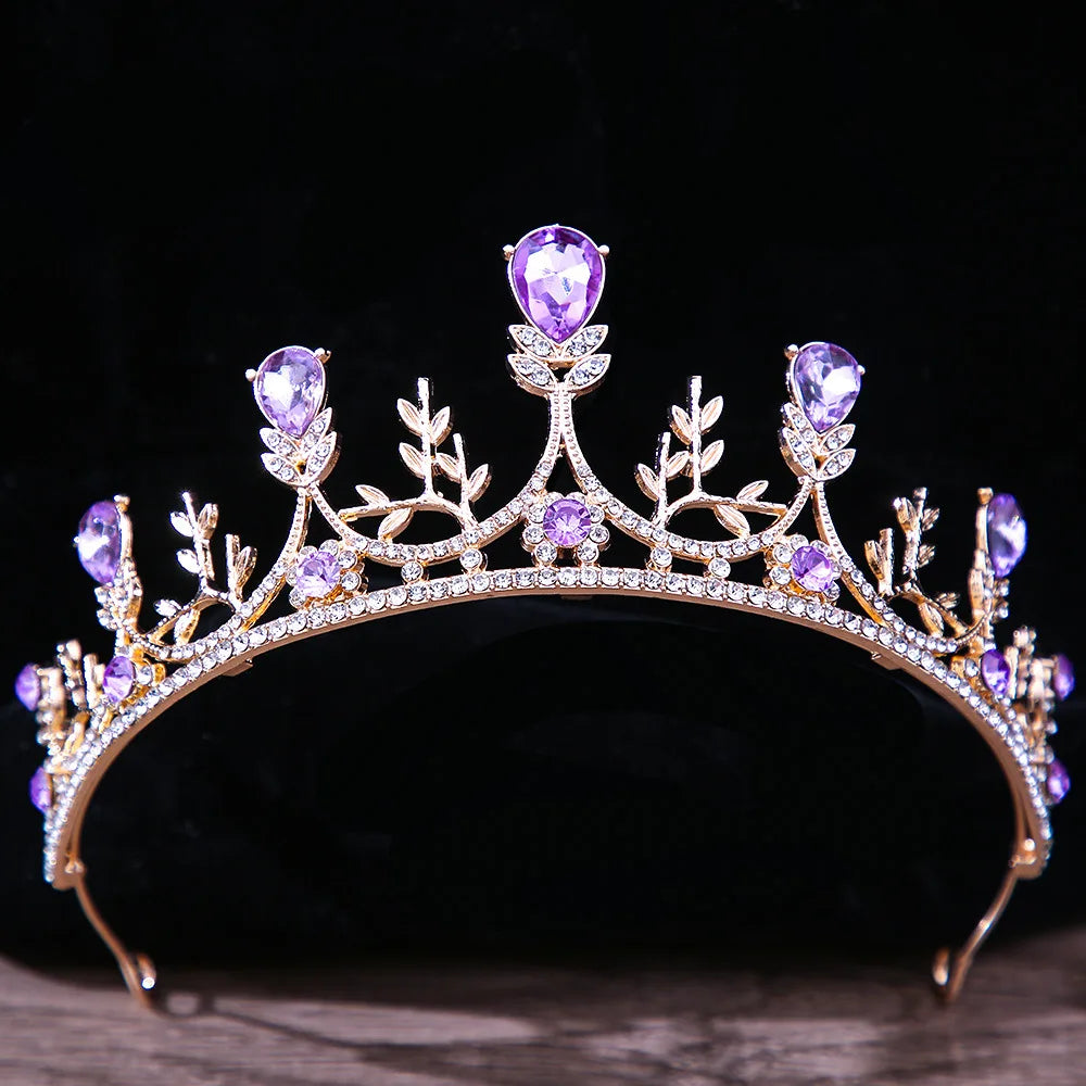 DIEZI Baroque Princess Queen Bridal Crown Purple Crystal Tiara For Women Wedding Vintage Crown Hair Dress Accessories Jewelry