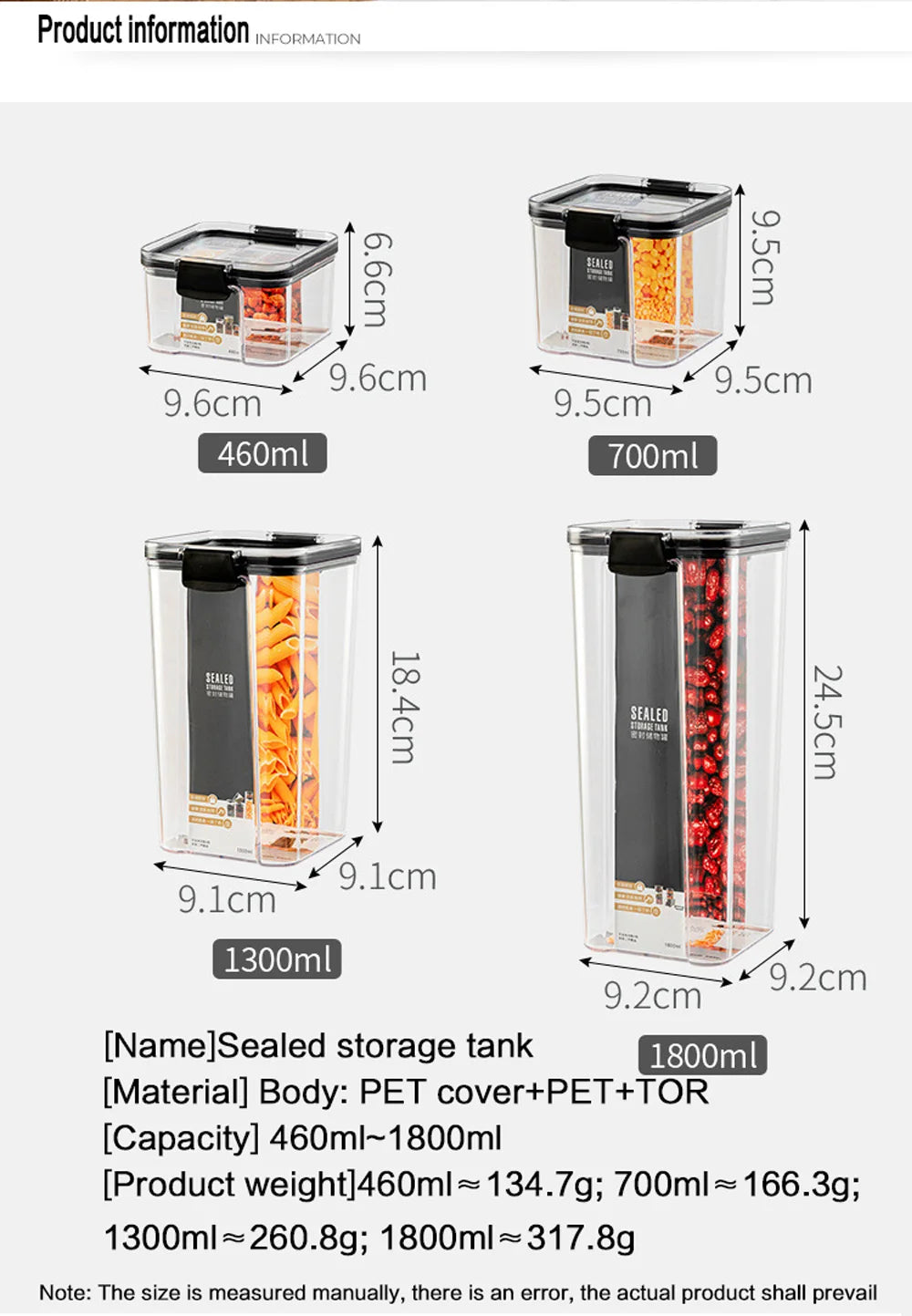Food Storage Containers Kitchen Storage Organization Kitchen Storage Box Ducts jars for Kitchen PET Food container Box Lid