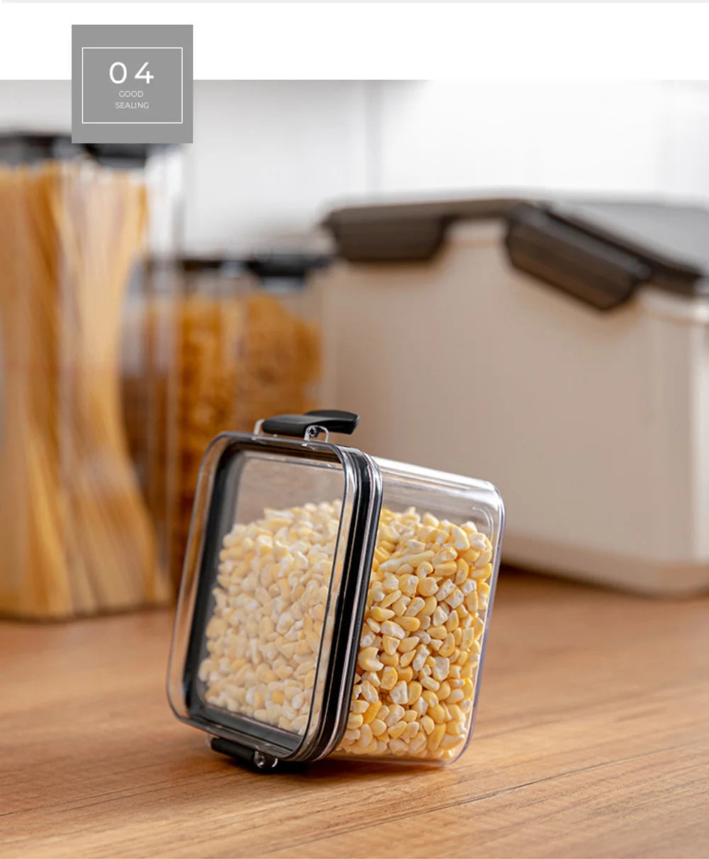 Side-locking lids with silicone gasket ensure airtight storage, keeping food dry and fresh.