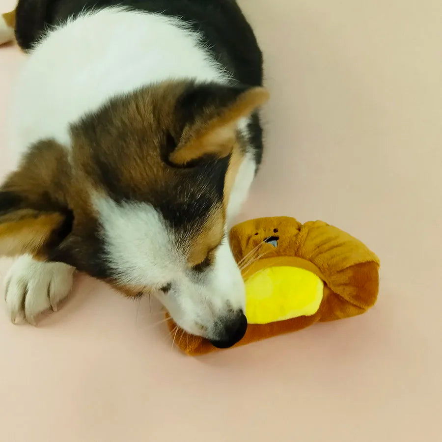 Hidden Food Sniffing Toy Squeaky Dog Toy Interactive Plush Toy Dog Chew Toy Pet Toys Croissant Bread Squeaking Sound Plush Toys