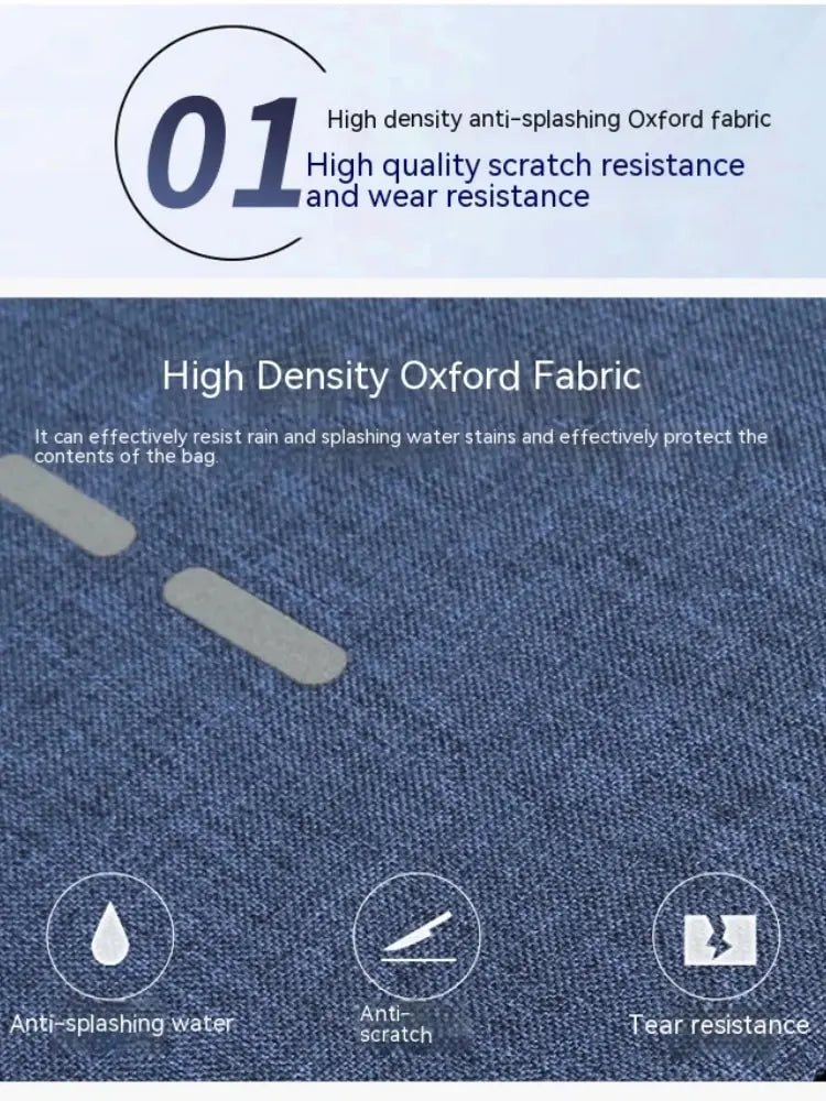 Durable Oxford Fabric – High-density, water-resistant, scratch- and wear-resistant material with strong nylon lining.