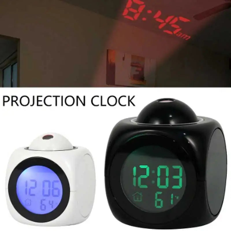 Multi-function Projection Chime Clock LED Light Alarm Clock Voice Alert Temperature Chime Clock Projection Clock