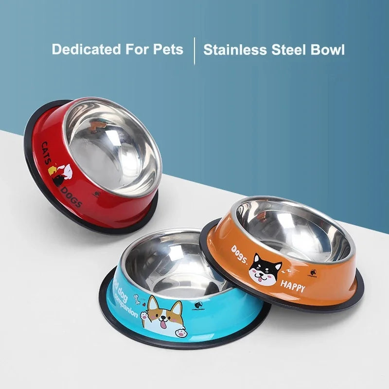 New Multicolor Stainless Steel Dog Cat Bowl Non-Slip Durable Anti-Fall Eat Drink Pet Food Container Feeder Dish Bowl