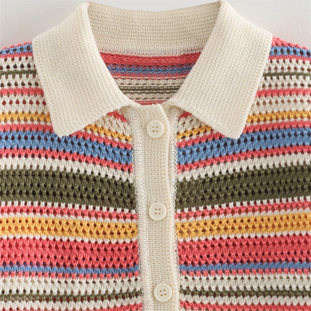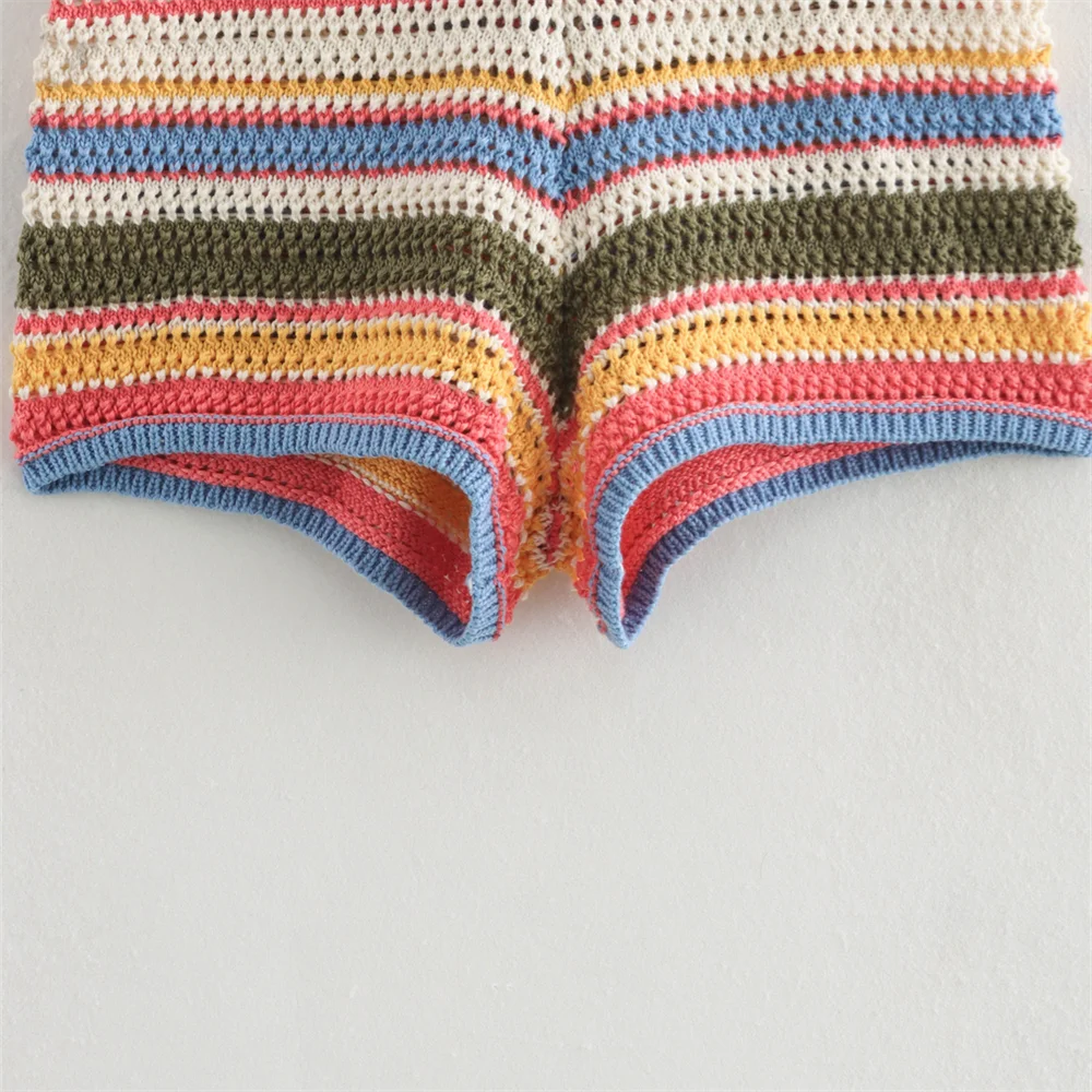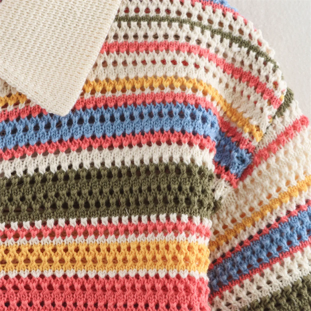 PB&ZA2024 autumn new women's clothing fashion temperament slim fit casual POLO collar short knitted sweater striped shorts set