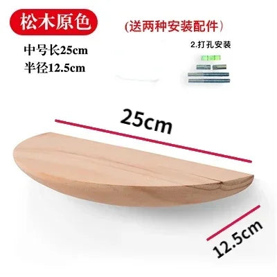 Semicircle Wooden Wall Shelf Background Wall Hanging Projector Display Stand Suspension Home Decoration Storage Organization