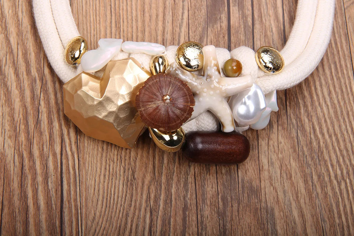 Statement Necklace with Beads&Starfish Design for Women Trendy Wedding Party Jewelry