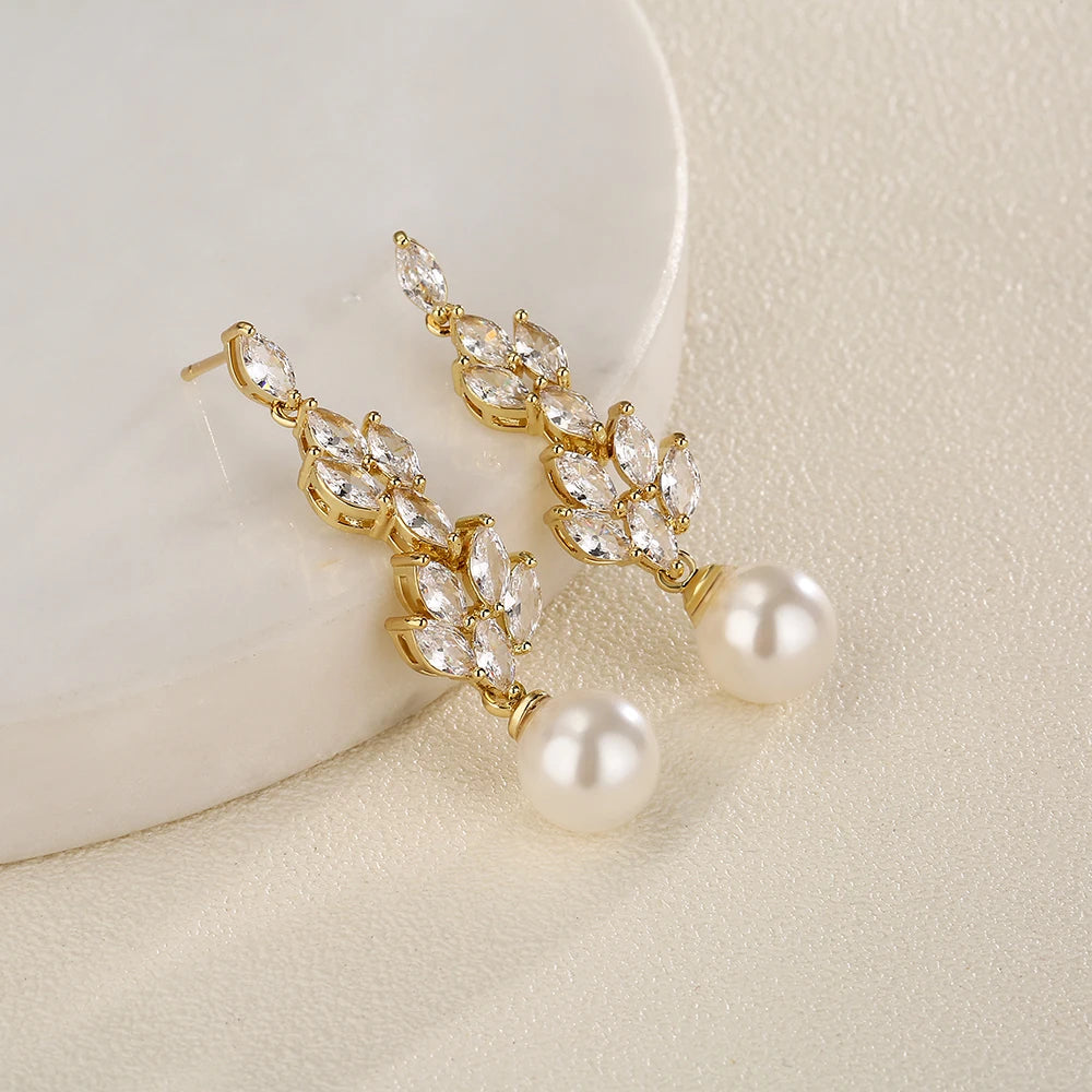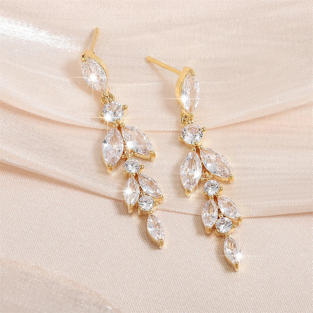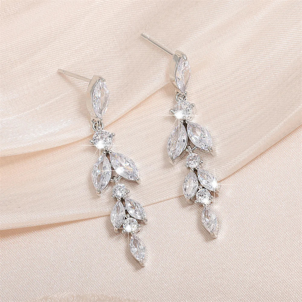 ZAKOL 2023 New Shiny Marquise Leaf Zircon Bridal Earrings AAA Cubic Zirconia Charming Design Drop Earring for Women Wedding